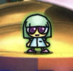 Armageddon is a short human with light skin and light teal hair. They have purple eyes, a light blue shirt and light purple shoes. In the animated opening, they have blue eyes. In-game and in some art they appear entirely green.